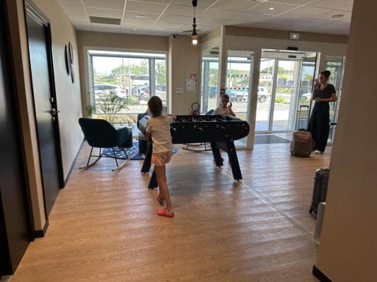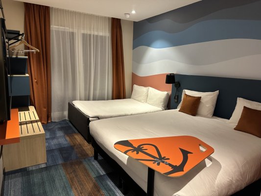I have visited many Ibis hotels. This is the newest, modern and comfortable. The furniture is new, the bed is perfect. The breakfast is quite ... Ещё I have visited many Ibis hotels. This is the newest, modern and comfortable. The furniture is new, the bed is perfect. The breakfast is quite modest, but you could find something to eat. The only thing I didn't like was the scramble, it was artificial. Nearby there is paid parking, the cost is 5 euros. Payment per animal - 10 euros.