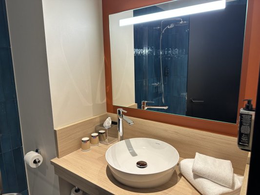 When I was in France, I stayed at this hotel. Everything would not be bad, but how can you make a shower cabin without any ... Ещё When I was in France, I stayed at this hotel. Everything would not be bad, but how can you make a shower cabin without any protection? And the drain in the sink was clogged, the water did not descend at all. I'm not very satisfied