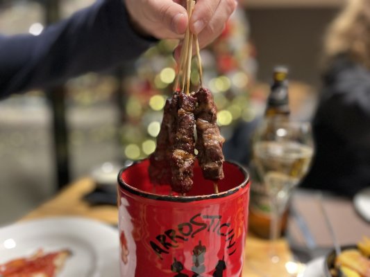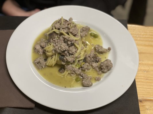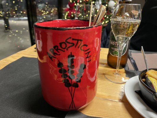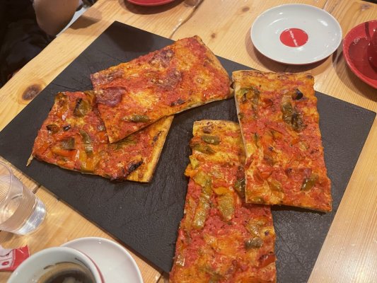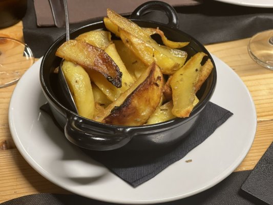 All'inizio volevano solo bere un caffè, ma la pizza ci è piaciuta così tanto che abbiamo deciso di fare una cena sostanziosa. Abbiamo ordinato arrostichini, più pizza, pasta, patate. Dirò questo - il ristorante non era più gustoso come al bar - le patate non erano appena cotte, la carne aveva delle vene, la pasta era molto unta.