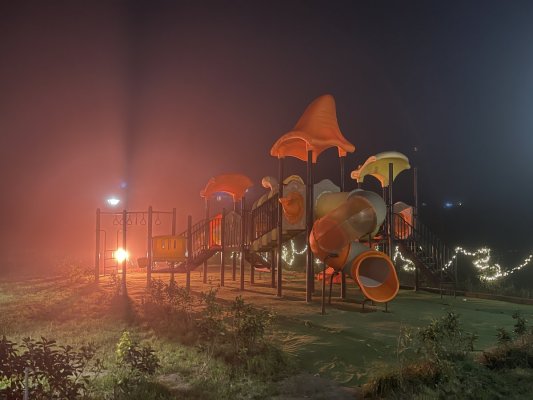 La cosa bella è che c'è un grande parco giochi, è stata una gioia per i bambini.