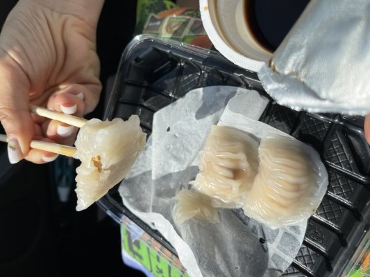Интересное блюдо из рисового теста и фарша из морепродуктов, употребляется в горячем виде с соевым соусом. Вкусно, сытно, но хочется, чтобы тесто было значительно тоньше и менее тягучим, прилипающим к зубам. Это отличная альтернатива хот-догам.