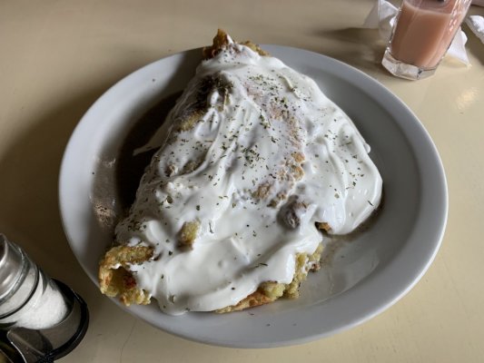Спочатку на сніданок до омлету подали хліб з пліснявою. Ну думаю ок, в кого ж не буває. Але принести підгорілі деруни зі смердючим маслом та зі слідами брудної сковорідки, то це вже було дно. Я навіть боюся уявити яка в них там антисанітарія на кухні. Люди добрі, бережіть себе та своє здоров‘є, не треба відвідувати такі заклади, навіть якщо це дешево, в підсумку буде навпаки.