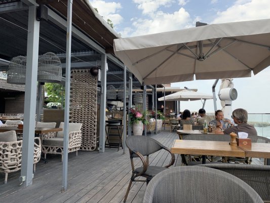 Розташування ресторану дуже зручне - прямо на пляжі. Тобто вигляд з вікна неймовірний. Кухня досить ... Ещё Розташування ресторану дуже зручне - прямо на пляжі. Тобто вигляд з вікна неймовірний. Кухня досить непогана. Не ресторанне сервірування блюд, але смачно. Ми були на сніданках, вибір досить непоганий. Готують швидко, що не мало важливо