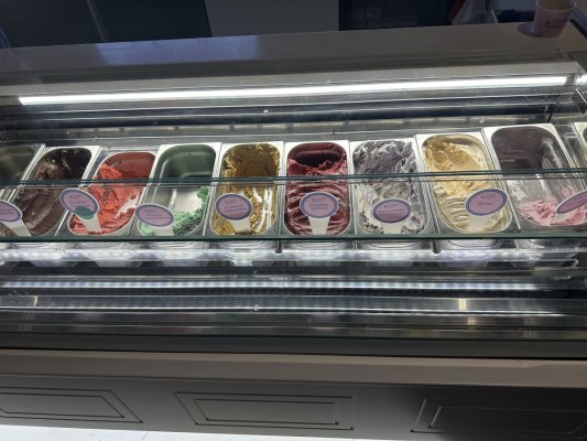 Вибір морозива менше, ніж на сайті, але є цікаве - лосось, помідори, просеко)))), а також багато класичного фруктового та просто солодкого.