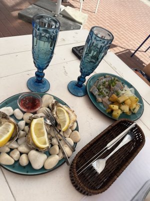 Сьогодні обіду в Анчосній на Софіївській Борщагівці. Світла не було, тому замовляли по скороченому меню. ... Ещё Сьогодні обіду в Анчосній на Софіївській Борщагівці. Світла не було, тому замовляли по скороченому меню. Не дуже складну картоплю з оселедцем та устриці. Все винесли швидко, все було смачно, особливо охолоджене бочкове просеко.