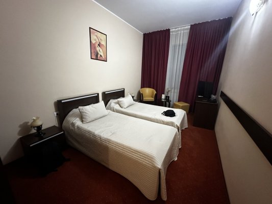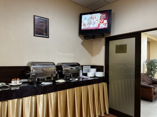 Pretty good hotel for the money. We stayed here for 1 night and were satisfied. ... Ещё Pretty good hotel for the money. We stayed here for 1 night and were satisfied. The room is clean, has air conditioning, a refrigerator with a free minibar. Clean bed and towels. There is a minimal set of personal hygiene products. The breakfast is also not bad - everything you need was there, and as soon as the food ran out, freshly cooked food was brought. There is a parking lot behind the hotel, which is also included in the price of accommodation. On the 1st floor there are rooms for people with disabilities.